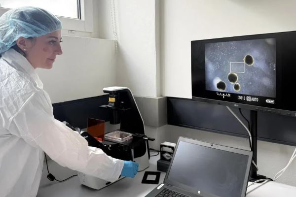 Di laboratorium, ahli biologi seluler FinalSpark, Dr. Flora Brozzi memberi saya sebuah cawan berisi beberapa bola putih kecil.